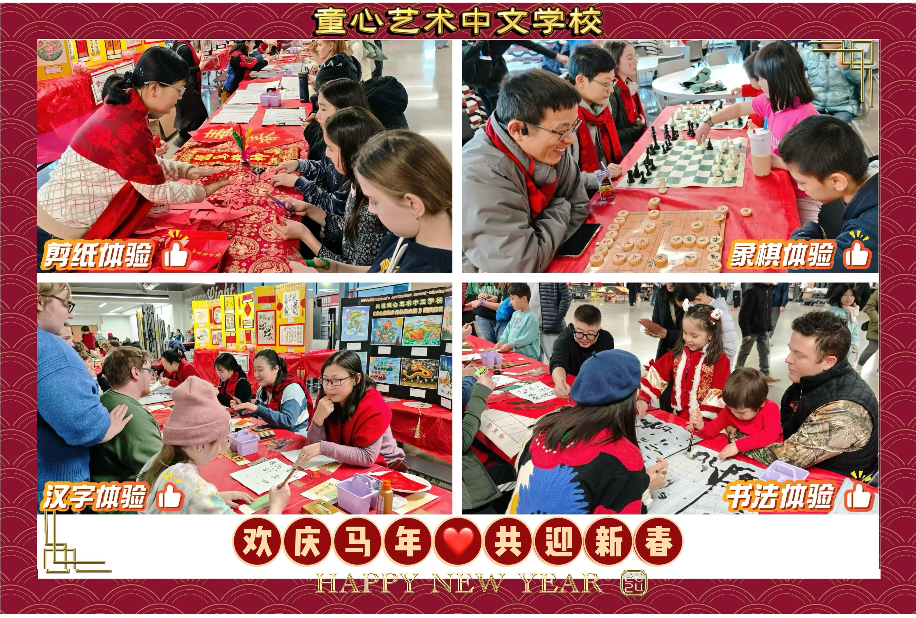 今年春节童心展台的成功,比往年更加盛况空前。这离不开童心老师和助教们的辛勤付出——从展台布置、文化讲解,到书法、绘画、剪纸、象棋等互动体验环节,充分展现了童心教学团队的专业与用心。感谢每一位老师的热情与奉献,也感谢家长们一直以来的支持与信任,让我们携手为孩子们创造更加美好的成长平台!
