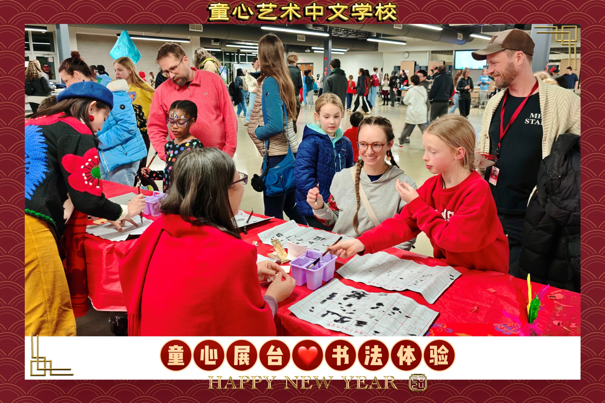 2026年2月12日周四晚,米德尔顿高中(Middleton High School)活动大厅里张灯结彩、喜气洋洋,一场面向社区的春节庆祝活动在热烈的氛围中展开。童心艺术中文学校此次再度应邀参加,并设立了丰富的文化汇展。童心中校的展台人气爆棚,吸引了众多米德尔顿和麦迪逊市的学生、家长及社区居民们驻足参与。欢声笑语与喜庆音乐交织,传统文化的魅力在互动体验中不断传递。童心中校的文化汇展成为本次活动最核心、最受欢迎、最有影响力的主展台。