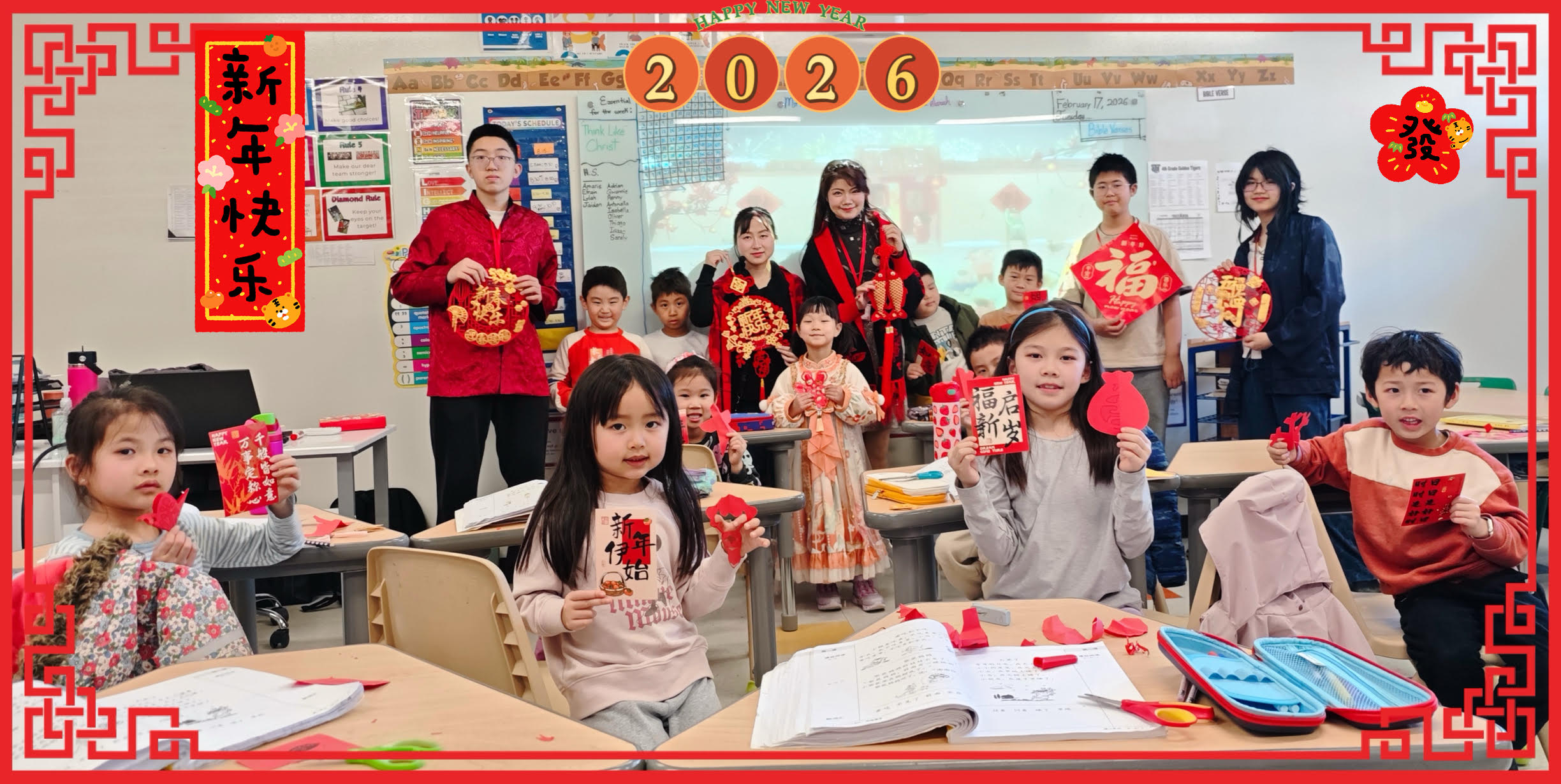 2026年2月15日,马年春节前夕,童心中校各班课堂依旧温馨有序,而年味已悄然弥漫。我校在常规课程教学之外,各班还融入了丰富多彩的春节主题活动。孩子们身着喜庆的节日唐装,课堂氛围格外热烈;中文老师们精心设计了“欢庆马年”主题课程,通过图文并茂的课件、生动有趣的讲解与互动小游戏,引导同学们了解中国春节的传统文化,在轻松愉快的氛围中共同感受浓浓年味。